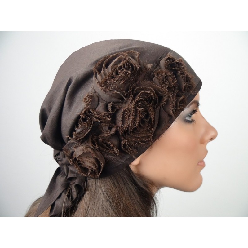 Motif constitué de plusieurs roses marron ton sur ton montées sur du tulle.